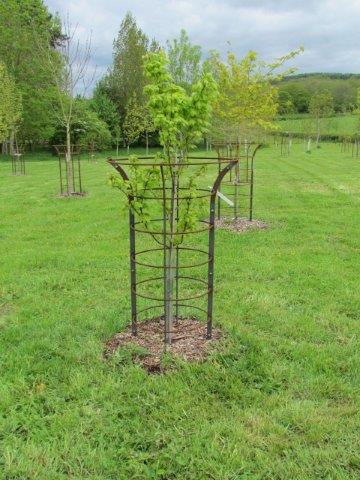 Our tree-guards split in half for ease of fitting and have ground spikes to secure them in position.